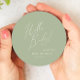 Whimsical Sage Green Hello Baby Round Paper Coaster