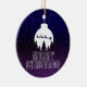 Whimsical Santa's Sleigh and Midnight view Ceramic Ornament