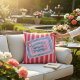 This cushion turned out exactly as shown online. The colors are true as shown and the design is perfect. It is durable and shows no sign of fading after being in bright sunlight for a few weeks. Although this pillow is an outdoor cushion, the fabric is soft and can easily be used indoors as well. The printing of this product is perfect. I love how this is a reversible pillow with fun colorful cocktails decorating one side and the other side is decorated with the same cocktails and palm leaves, giving it a bit more versatility. I also love how this pillow coordinates easily with other cushions in the outdoor pillow collection of prettyfancypillows.