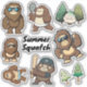 Whimsical set of Sasquatch, Bigfoot or Squatch, that is all ready for summer and summer sports. Add a bit of humor to your water bottle, laptop, car window and more!