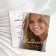This chic, elegant 2025 graduation party invitation features a photo of the college or high school graduate. Whimsical, vintage real gold foil script appears on an overlay along with a photo of the graduate. All of the details for the grad party appear in black and white on the back, along with more trendy script. A stylish and simple graduation design for the class of 2025!