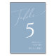 Introducing our stunning whimsical script | dusty blue table number perfect for your simple modern boho spring celebration. Our elegant design includes a vibrant bright, pastel color palette with a vintage chic calligraphy script. Whether you prefer a minimalist or classic style, our unique editable product offers luxury and elegance, perfect for creating a classy yet romantic touch sure to make your special day unforgettable. Contact us with any questions about the design, and let us help you make the wedding of your dreams.