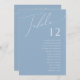 Introducing our stunning whimsical script | dusty blue table number chart perfect for your simple modern boho spring celebration. Our elegant design includes a vibrant bright, pastel color palette with a vintage chic calligraphy script. Whether you prefer a minimalist or classic style, our unique editable product offers luxury and elegance, perfect for creating a classy yet romantic touch sure to make your special day unforgettable. Contact us with any questions about the design, and let us help you make the wedding of your dreams.