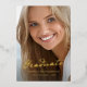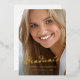 This chic, elegant 2025 graduation announcement features two photos of the college or high school graduate. Whimsical, vintage real gold foil script appears on an overlay on the front, along with two photos of the graduate. You can adjust the wording on the back of the card in black and white to make this either a simple graduation announcement, or a grad party invitation. A stylish and simple graduation design for the class of 2025!