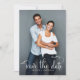 Plain white envelopes are included with paper invitations and will come to fit the invitation size you select. If you don’t need the envelopes, you may choose to not receive them by selecting the dropdown below "Envelopes" and choosing "None." If you’d like to have a design on your envelopes, you can browse all of these available envelopes to find the design that complements your Whimsical Script Photo Save The Date Announcement.