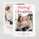 Whimsical Script Red Bow Christmas 2 Photo Holiday Card