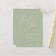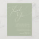Introducing our stunning whimsical script | sage green table thank you card perfect for your simple modern boho spring celebration. Our elegant design includes a vibrant bright, pastel color palette with a vintage chic calligraphy script. Whether you prefer a minimalist or classic style, our unique editable product offers luxury and elegance, perfect for creating a classy yet romantic touch sure to make your special day unforgettable. Contact us with any questions about the design, and let us help you make the wedding of your dreams.