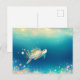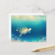 Whimsical Sea Turtle and Floral Bloom Postcard