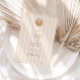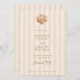 Featuring a beautiful watercolor shell at the top, this unique monogram can be customized with the initials of the bride and groom, adding a touch of intimacy and elegance to your wedding stationery. Whimsical handwritten font elements add a personal and playful touch to your announcement, complementing the minimalist design and inviting your guests with warmth and style. Emphasizing simplicity and elegance, the overall layout is clean and uncluttered, allowing the watercolor shell and your wedding details to shine. This minimalist approach ensures that your invitation is both stylish and timeless. The text is presented in a neutral, mocha brown color, providing a sophisticated contrast against the soft almond colored, striped background. However, you can easily change the font color to match your wedding theme, ensuring a cohesive look throughout your stationery.