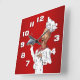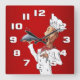 A whimsical singing chef carrying his latest culinary creation. The rich red background with subtle shading contrasts well with the white clock face numbers. This clock is a great choice for kitchens, restaurants, cafes and bistros. It makes a nice gift for your favorite chef or foodie.