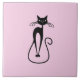 Whimsical Skinny Black Cat Pink Ceramic Tile