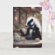 A whimsical Skunk business man having coffee in an outdoor cafe