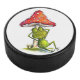 Whimsical Sleeping Frog Under a Mushroom Hockey Puck