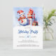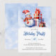 Invite guests to a festive gathering with this charming holiday party invitation featuring a cheerful snowman, colorful wrapped gifts, and falling snow. Perfect for Christmas or winter celebrations.