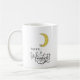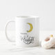 A sweet and whimsical mug featuring a hand-drawn crescent moon with a tiny star hanging below, paired with the uplifting phrase “Delight in the Moonlight.” The soft, playful artwork and flowing script create a calming, dreamy feel—perfect for anyone who loves celestial charm, quiet moments, or a touch of nighttime magic. A lovely choice for gifting or enjoying your own cozy cup under the glow of the moon.