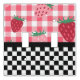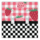 Whimsical Spring / Summer themed light plate design features top half of red and pink strawberries on pink gingham and bottom half of black and white checkerboard.
