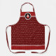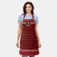 © 2020 Socialite Designs Inc. Whimsical apron with a red and white polka-dot background, circle pattern on upper and lower hemline, and a strawberry cupcake in a circle.