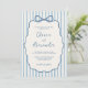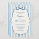 Whimsical Stripe Bow Dusty Blue Ivory Wedding Invitation