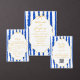 The matter paper is our sample of choice -- it's a reasonably priced, good quality, nice feeling paper stock. We were a little concerned the muted rustic blues might not reproduce all that well (usually by light colored samples), but they're just gorgeous! The white lettering is perfect in combination with the blue background, and the typography is all easy to read.