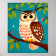 Whimsical Style Painting of an Owl On A Tree Poster