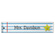 Fun school teacher's desk nameplate, with graphic lines of notebook paper and a smiling yellow star, on the far right side. Custom black text is ready to personalize. Makes a great gift idea.