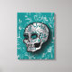 Whimsical Teal and Silver Sugar Skull Canvas Print