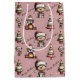 Whimsical Teddy Bear Christmas Pink Background Medium Gift Bag