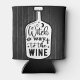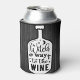 A decorative wine can cooler with whimsical text and celestial designs against a textured wooden background.