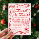 Celebrate the season with this whimsical Christmas party invitation featuring hand-drawn red illustrations and lettering on a light pink background. The design showcases Santa lounging in a martini glass alongside his list, stars, and a flowing ribbon frame surrounding your party details. “Tinsel & Tinis” appears in a fun handwritten script for a modern, trendy twist on a classic Christmas theme—perfect for holiday cocktail parties, Secret Santa gatherings, or festive soirées with friends.