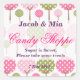 Whimsical Tree Candy Shoppe Sticker.Great for birthday parties, Weddings, baby showers or other events with Candy buffets! Either stick to jars or paper bags. to make them extra special, stick to some precut cardstock and add a ribbon. Then simply hang around the jar! Or stick a coffee stirrer to the back of pre-cut cardstock, add the sticker and use as a cupcake topper! Design features a whimsical tree pattern with pink and green trees with polka dots against a white background with the words Candy Shoppe in swirly font. Feel free to change text and text color how you like!