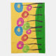Whimsical and Fun Trees Kitchen Towel, artist drawn trees on a green hillside on a bright golden yellow background will brighten up any kitchen. A perfect gift for any occasion. Signed by artist, G. Gabel