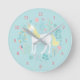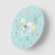Whimsical Unicorn & Flowers Aqua Round Clock