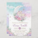 Whimsical Unicorn Moon Purple Floral Baby Shower Invitation