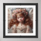 Whimsical vintage sleeping angel with blush roses framed art