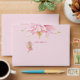 Soft pink on the outside with a little flower fairy and a delicate flower the envelope features in the inside a magical watercolor design with little fairies in pink floating over flowers in different shades of pink and white. The fairies have delicate wings and wear colorful dresses while they are surrounded by fragrant flowers in soft and bold colors.