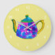 Whimsical watercolor teapot large clock