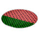 Whimsical kitchen glass cutting board features watermelon pink and black hearts pattern with dark green checkerboard bottom border.