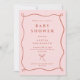 Whimsical Wavy Frame & Bow Pink Baby Shower Invitation