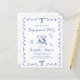 Set the tone for a joyful celebration with this charming engagement party invitation featuring a french blue wavy frame, hand-drawn bows, and playful script lettering. The cheerful toasting wine glasses add a fun, festive touch, creating the perfect blend of romantic and whimsical style. NOTE: This budget-friendly paper is similar in weight to photo paper -- a larger and thicker 5x7 traditional card stock version is also available (message us for the link).