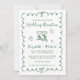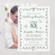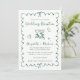Romantic wedding reception save the date featuring a green wavy frame adorned with coquette bows, whimsical hand drawn illustrations of a heart, stars and wine glasses, and "Wedding Reception" and the names of the bride and groom in a playful green script. Your photo fills the back of the announcement.