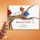 Beautiful whimsical moving announcement postcard with an illustration of some fairy houses on a tree. Illustrated and designed by Patricia Alvarez.