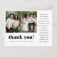 Modern wedding thank you postcard features whimsical black typography and a two photo grid with a simple thank you message.