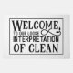 Welcome guests to your home with a touch of humor and a playful spirit with our "Loose Interpretation of Clean" doormat! This unique and whimsical doormat is the perfect addition to your entryway, offering a warm greeting to all who cross your threshold.