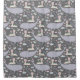 Whimsical whales and bunnies repeating pattern with grey cartoon whales swimming and flying bunny rabbits wearing a green scarf, pink hearts, doodle stars, cartoon blue birds wearing a pink scarf, blue falling compound leaves, flowers and doodle clouds. Set on a dove gray background.