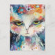 whimsical white cat paint splatters postcard