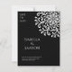 Celebrate your special day with a touch of elegance and sophistication with our unique and artfully designed wedding invitation set. Featuring a black background adorned with a mesmerizing white rotational symmetry pattern of swashes and dots making up a flowery pattern, this invitation beautifully captures the essence of timeless romance and modern charm.
