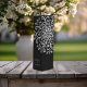 Celebrate your special day with a touch of elegance and sophistication with our unique and artfully designed wedding invitation set. Featuring a black background adorned with a mesmerizing white rotational symmetry pattern of swashes and dots making up a flowery pattern, this invitation beautifully captures the essence of timeless romance and modern charm.