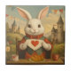 Whimsical White Rabbit Hearts Enchanted Wonderland Ceramic Tile