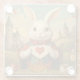 Whimsical White Rabbit Hearts Enchanted Wonderland Glass Coaster