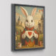Fall in love with this charming and unique take on the White Rabbit from Alice in Wonderland! This delightful illustration portrays a cute, anthropomorphic white rabbit seated at a rustic table, holding a heart-adorned invitation or card. Dressed in a whimsical red and green outfit, he's ready for a tea party in an enchanting landscape dotted with fairytale castles, colorful banners, and blooming flowers. Teacups and a cake complete this sweet and imaginative scene, perfect for fans of Alice in Wonderland and anyone who adores whimsical, heart-filled art.